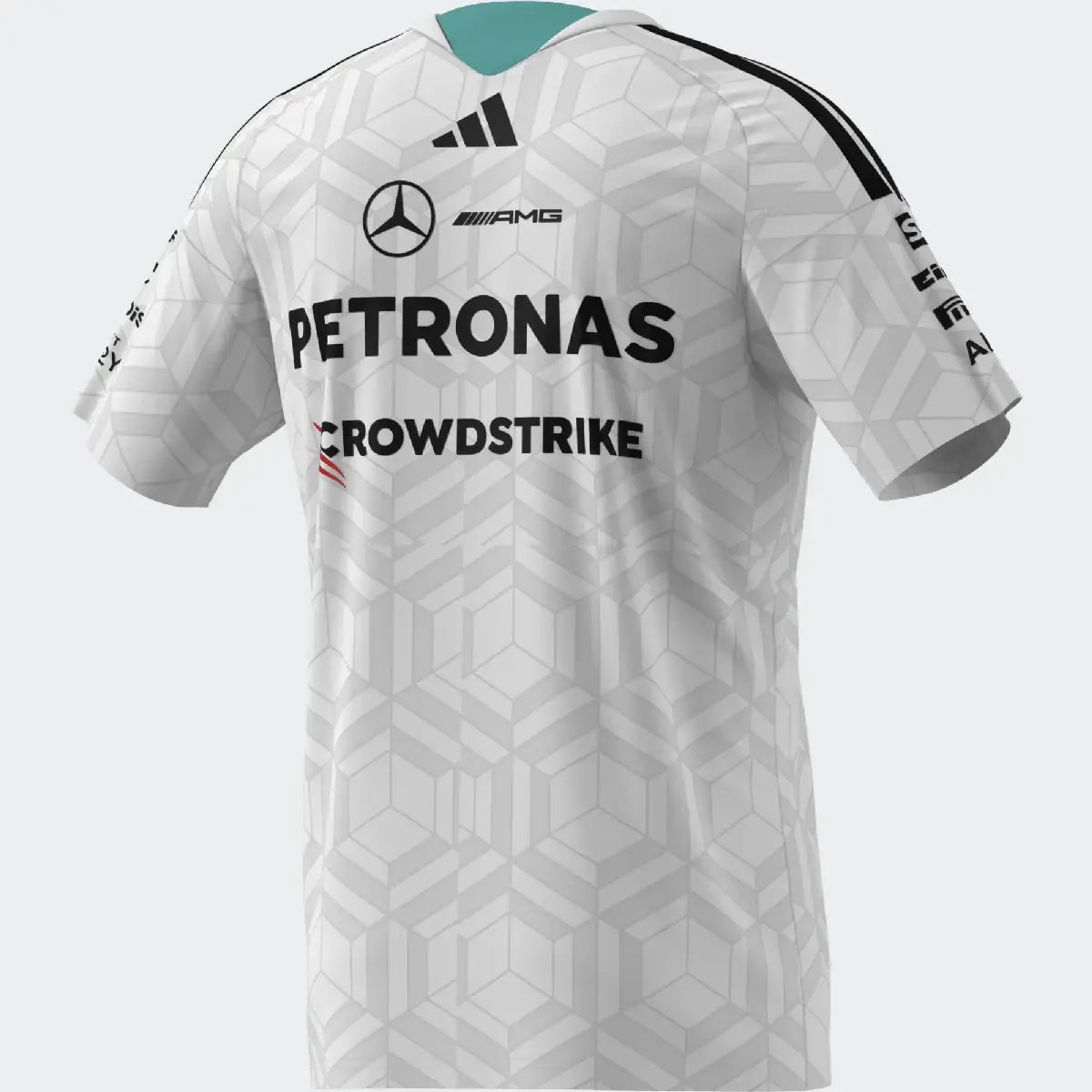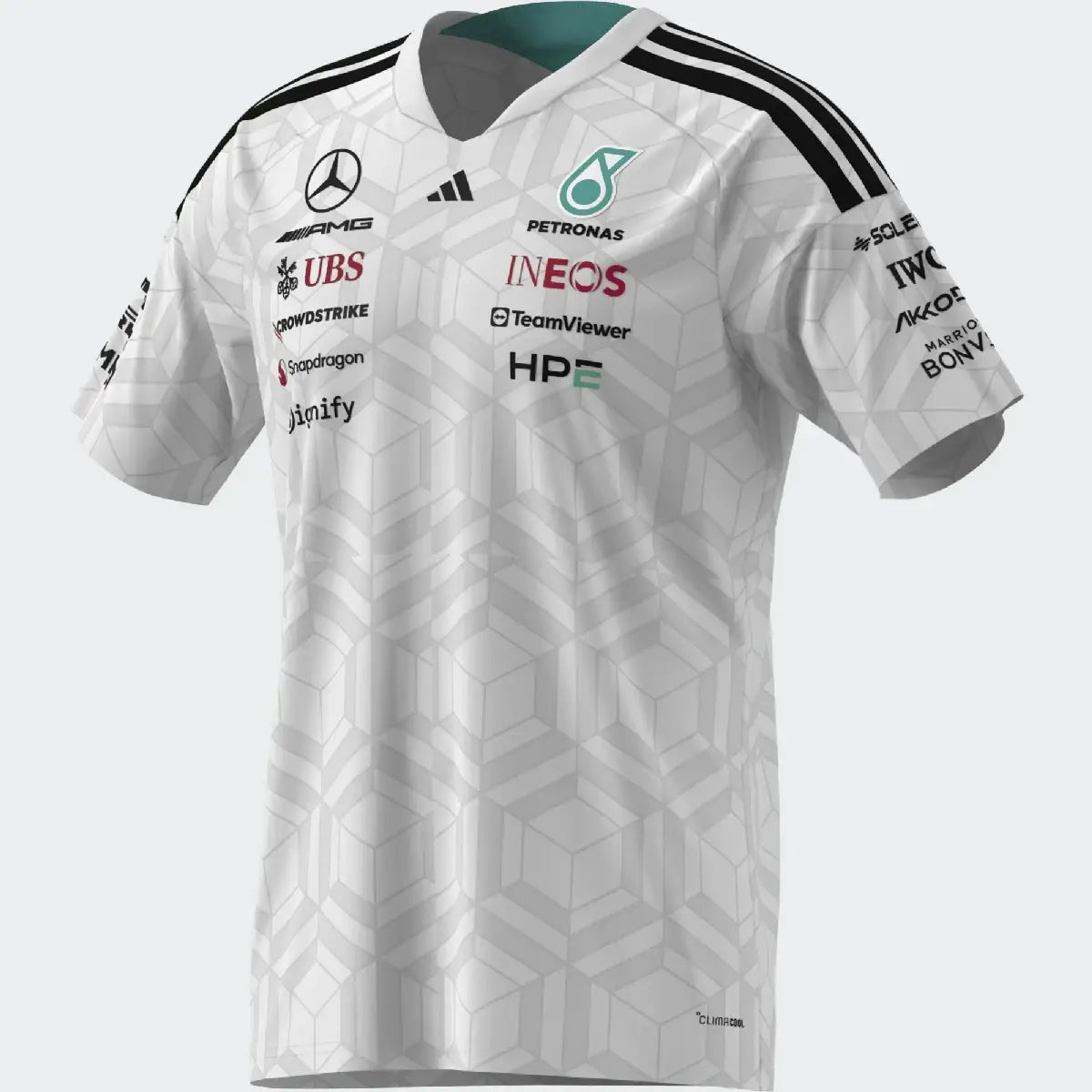 Polo Mercedes, squadra, adidas, piloti, bianco